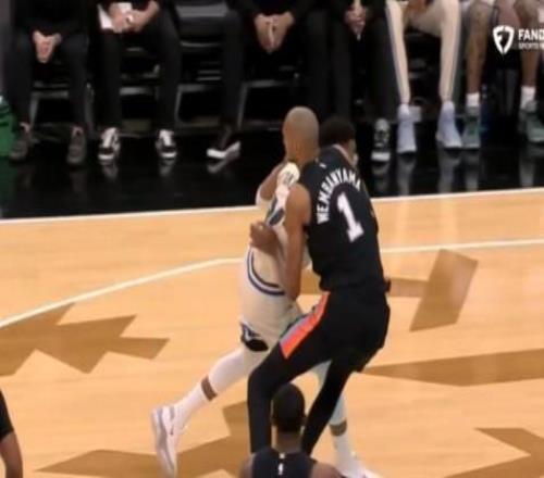 文班在防守字母哥时与对方对撞膝盖痛苦倒地,现已返回更衣室