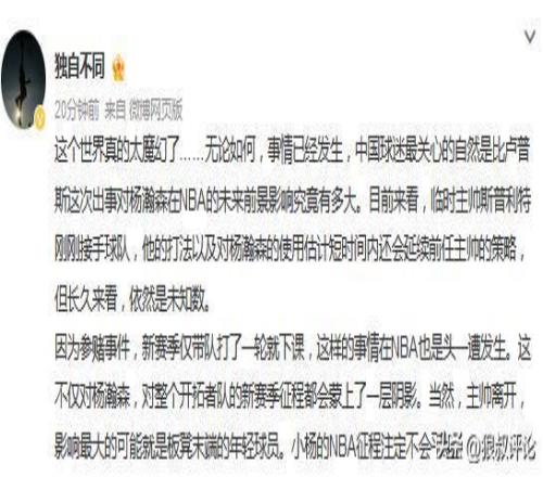 青岛记者杜金城发文点评:这个世界真的太魔幻了……无论如何,事情已经发生,中国球迷最关心的自然是比卢普斯这次出事对杨瀚森在NBA的未来前景影响究竟有多大。