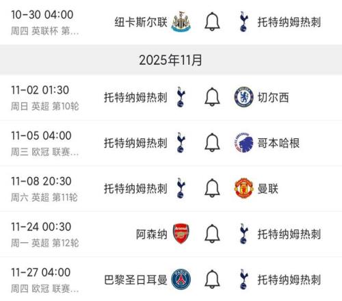 魔鬼赛程!热刺接下来6场赛程连碰喜鹊、蓝军、红魔、枪手和巴黎