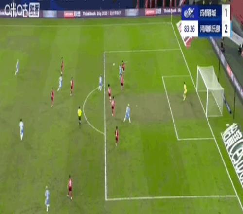 1分钟后成都蓉城右路快攻,杨明洋下底传中,皮球疑似打到阿奇姆彭手上,主裁在VAR确认后并没有吹罚点球。第69分钟,成都蓉城中路强攻受阻传回来,严鼎皓禁区弧顶处迎球大力兜射,王国明奋勇将球扑出底线。第82分钟,成都蓉城后场解围不远,纳萨里奥禁区前沿抢到皮球跟进大力抽射被挡出,皮球弹到禁区右侧前沿,替补登场没多久的何超迎球超远距离大力抽射,皮球直挂球门左上死角,河南队连扳2球2:1逆转绝杀成都蓉城。