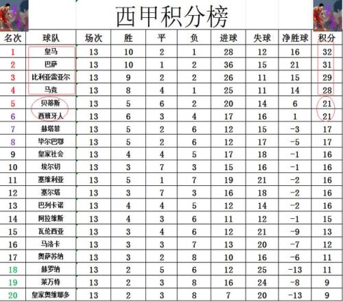 西甲最新积分战报抢5激烈!西班牙人止住连败追上贝蒂斯仍排第6