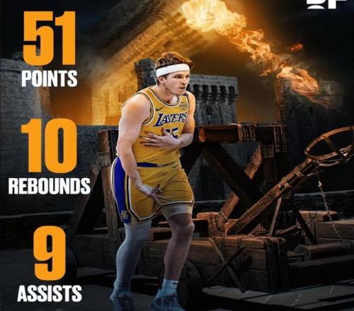更令人惊叹的是,在背靠背的两场比赛中,里夫斯合计轰下92分,创造了湖人队史自2007年科比后的最高纪录。开季短短五场比赛,里夫斯便已斩获171分和50次助攻,成为湖人队史首位在赛季前五场比赛中达成至少150分50助攻的球员。